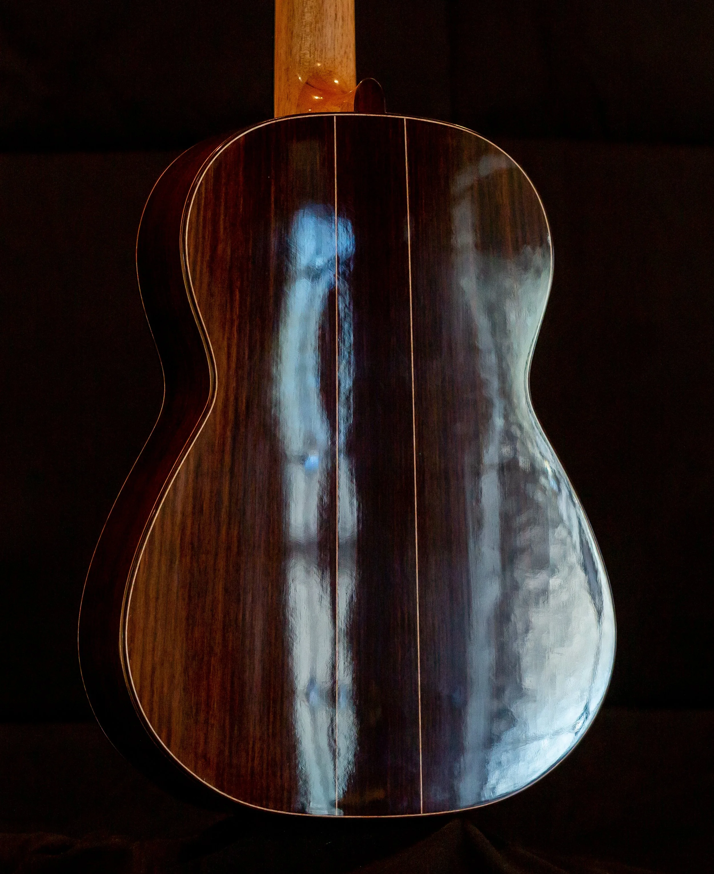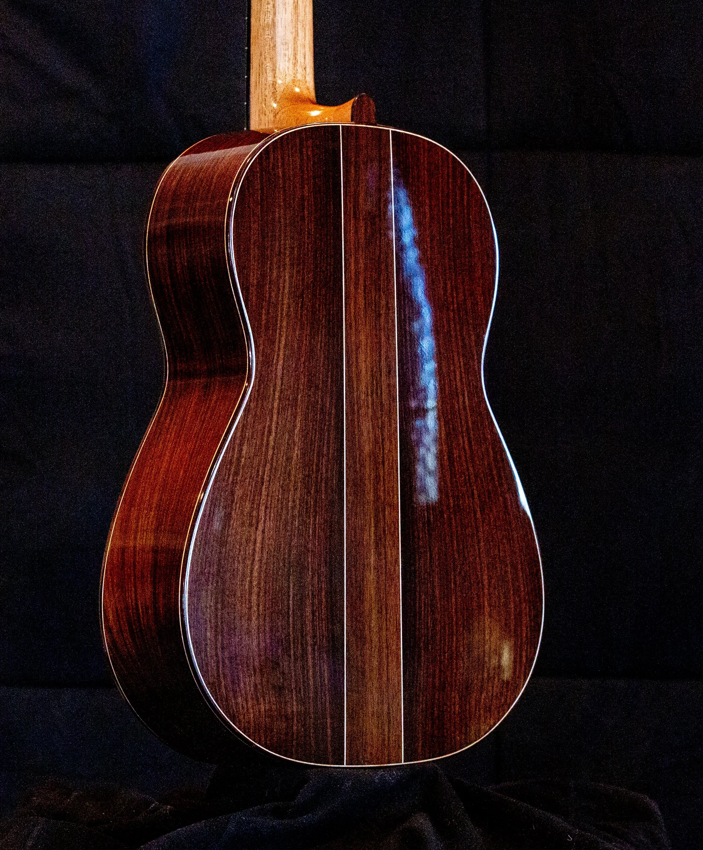 SPRUCE SOUNDBOARD AND 60 YEAR OLD EAST INDIAN ROSEWOOD WITH BIRDSEYE MAPLE BACK STRIP. FRENCH POLISHED THROUGHOUT. 650 MM SCALE. VERY ROBUST BUT DELICATE ATTACK. PRICE $12,000 1/25/2026