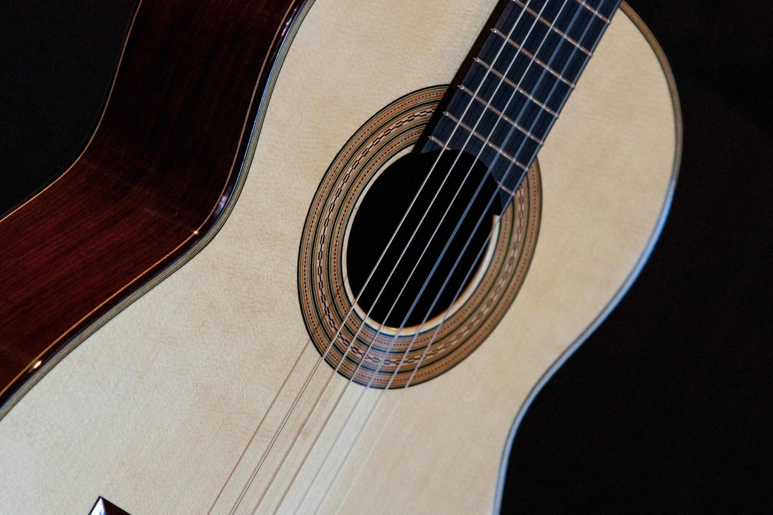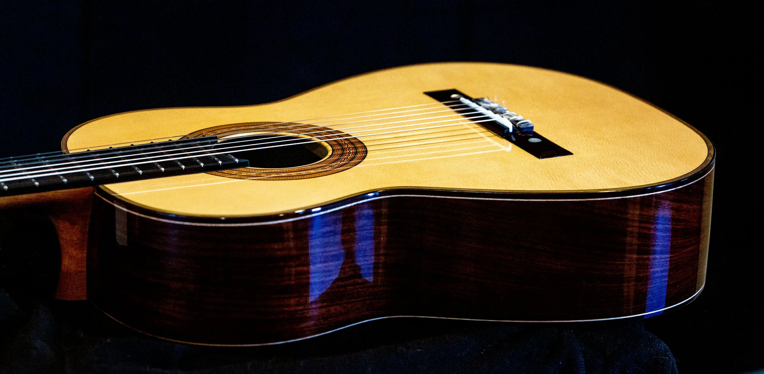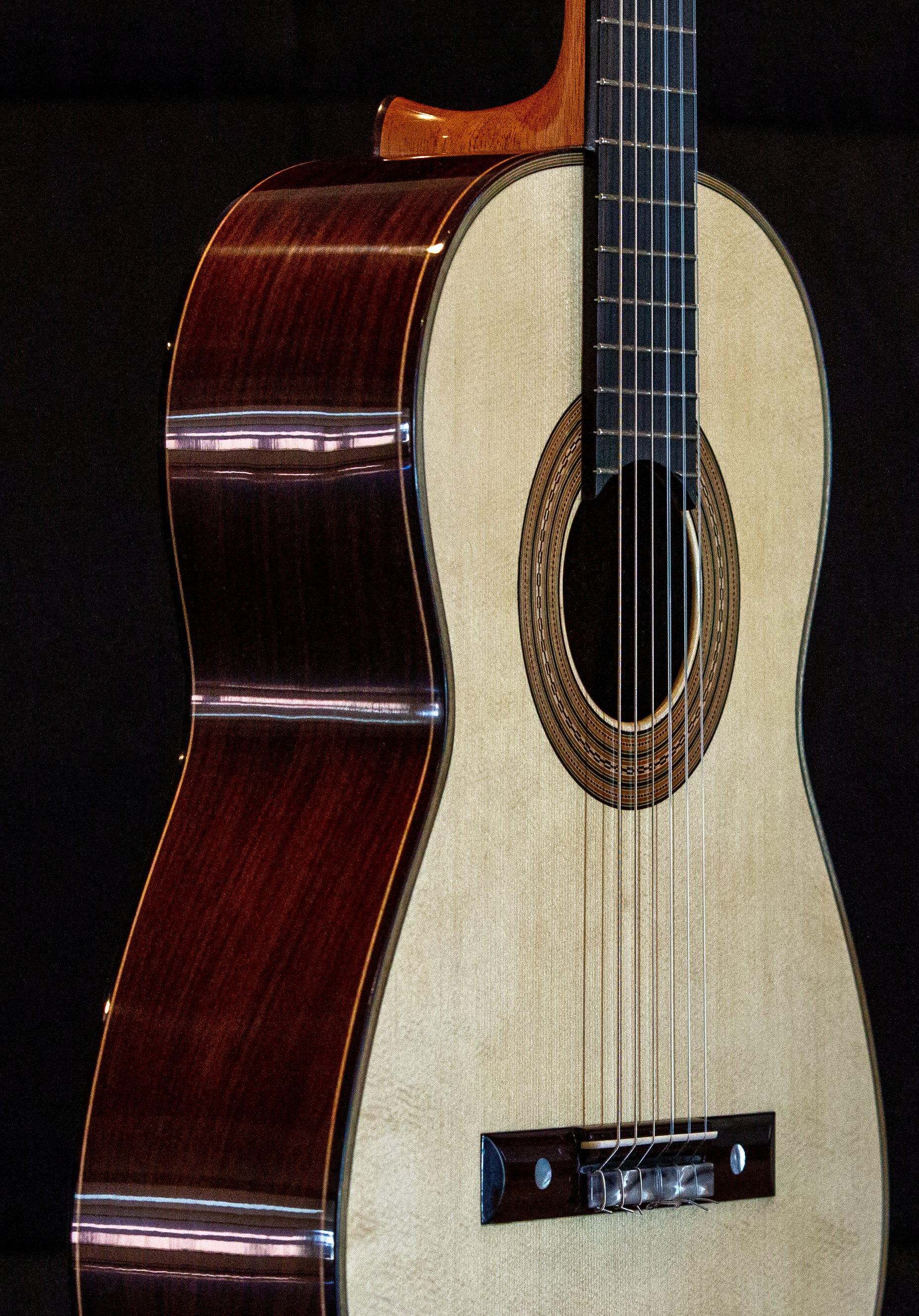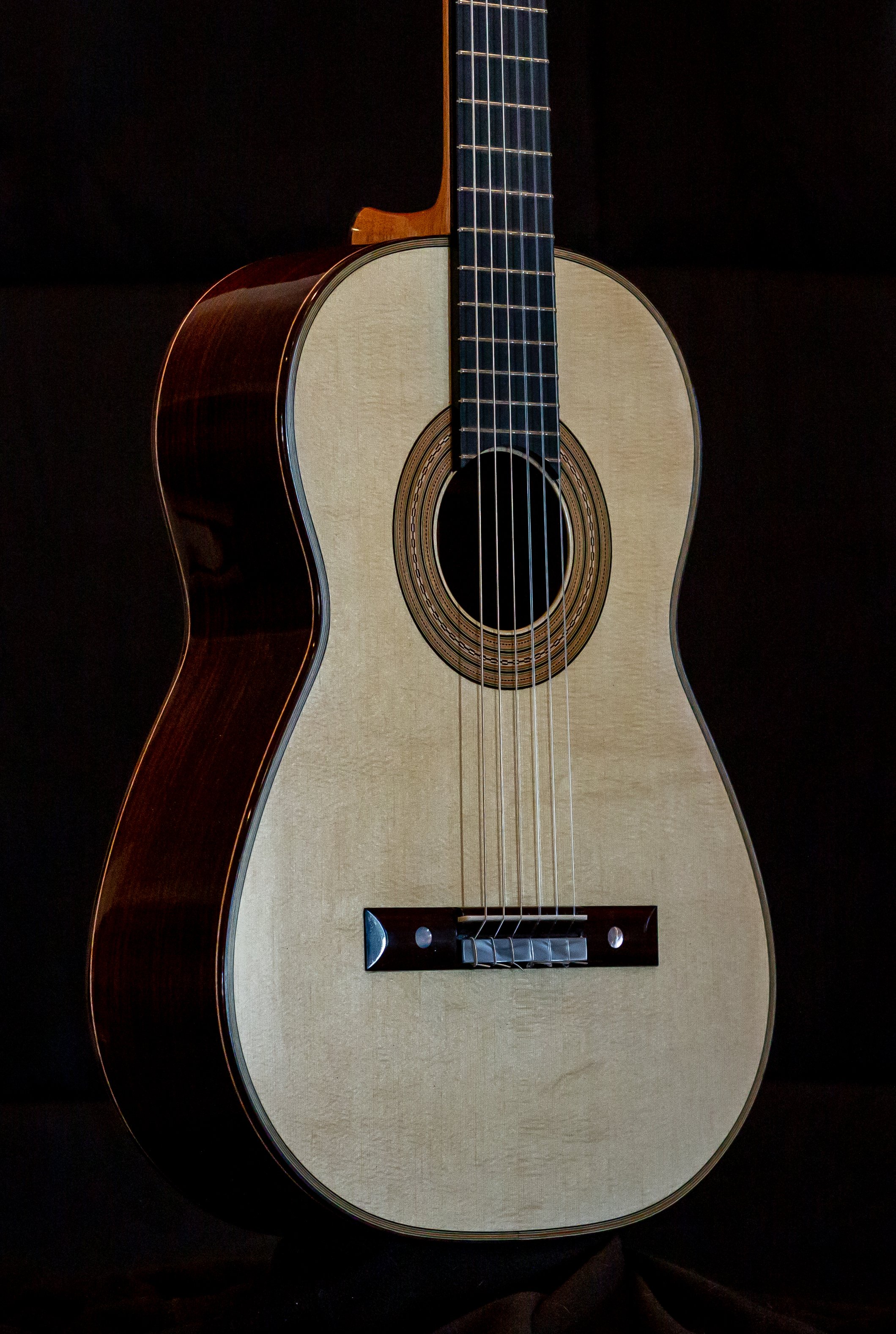 Torres SE-114 body with Birdseye maple back and sides, spruce soundboard. Lacquer back and sides<French polished top. strung up December 20th 2025. PRICE $12,000